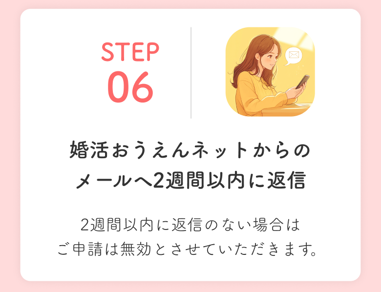 STEP6 婚活・結婚おうえんネットからのメールに2週間以内に返信