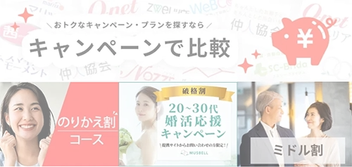 キャンペーン開催中!おうえんネットでも各結婚相談所でも、毎月キャンペーンを実施しています。お得に賢く婚活をスタート!